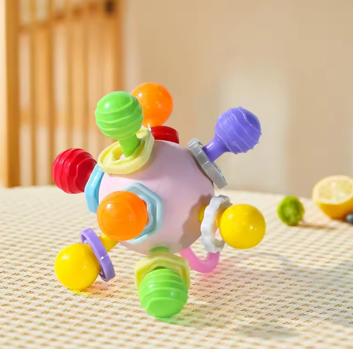 As cores vibrantes e as formas realistas capturam a atenção do bebê, transformando o desconforto em uma experiência sensorial positiva. Enquanto mordem e exploram, os pequenos desenvolvem coordenação motora e curiosidade, o que ajuda a redirecionar o foco da irritação para a brincadeira — mais sorrisos, menos choro.